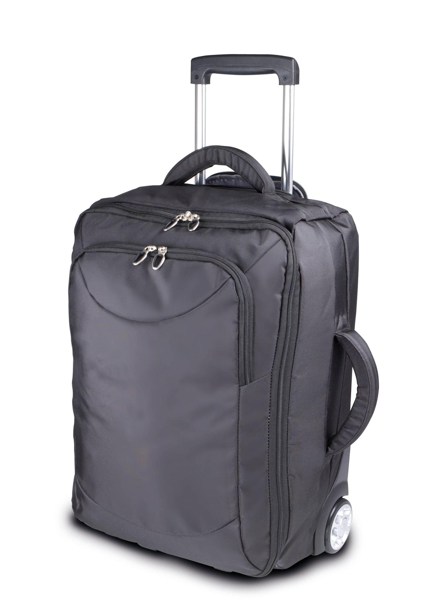 Trolley taille cabine en Shine polyester 600D, enduction PU. Large compartiment central, poche frontale, zips avec rappel ton sur ton, picots de fond, poignée supérieure et de côté renforcées et matelassées. Zips SBS.