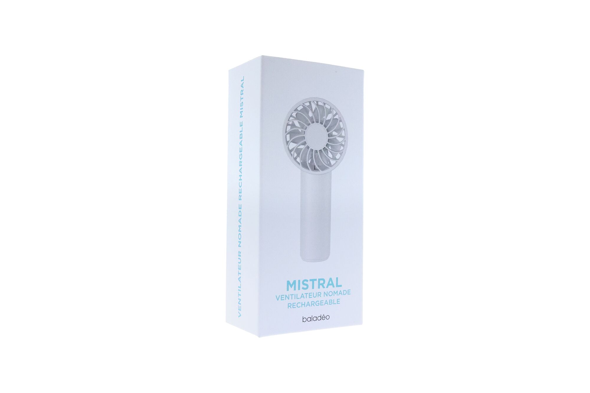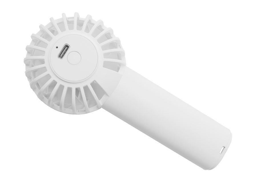 Ce ventilateur nomade rechargeable est en structure ABS et avec hélices en polypropylène. Il fonctionne avec une batterie rechargeable de 1200mAh. Son autonomie maximum est d’une heure en vitesse 1. Livré avec un câble d’alimentation USB-C. Dragonne fournie.