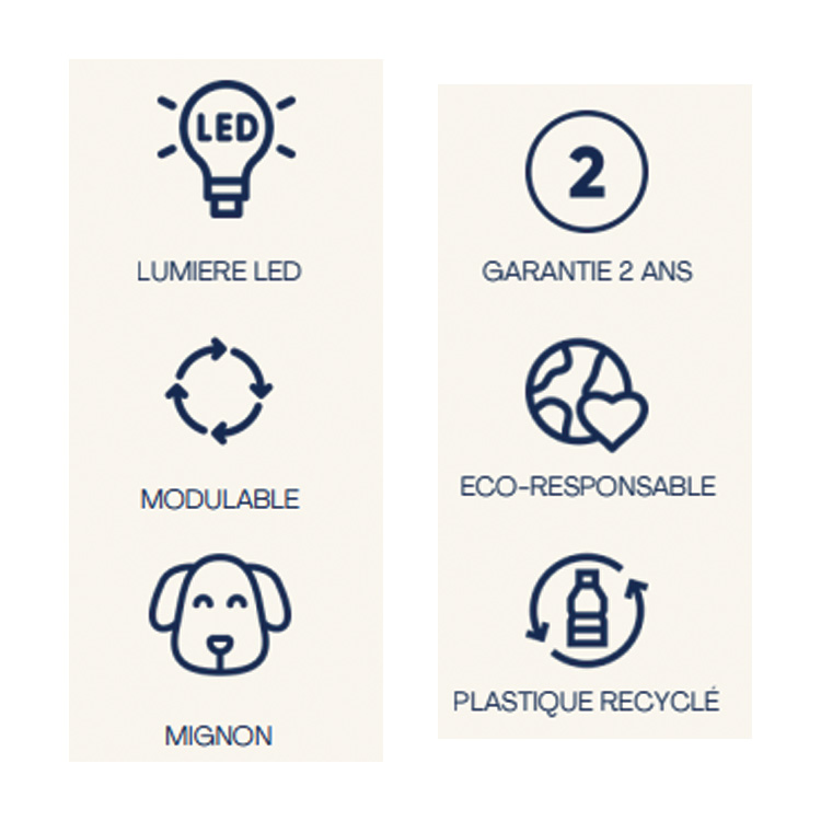Elle diffuse une lumière LED douce pour une ambiance rassurante, pour lire ou s’endormir tranquillement.