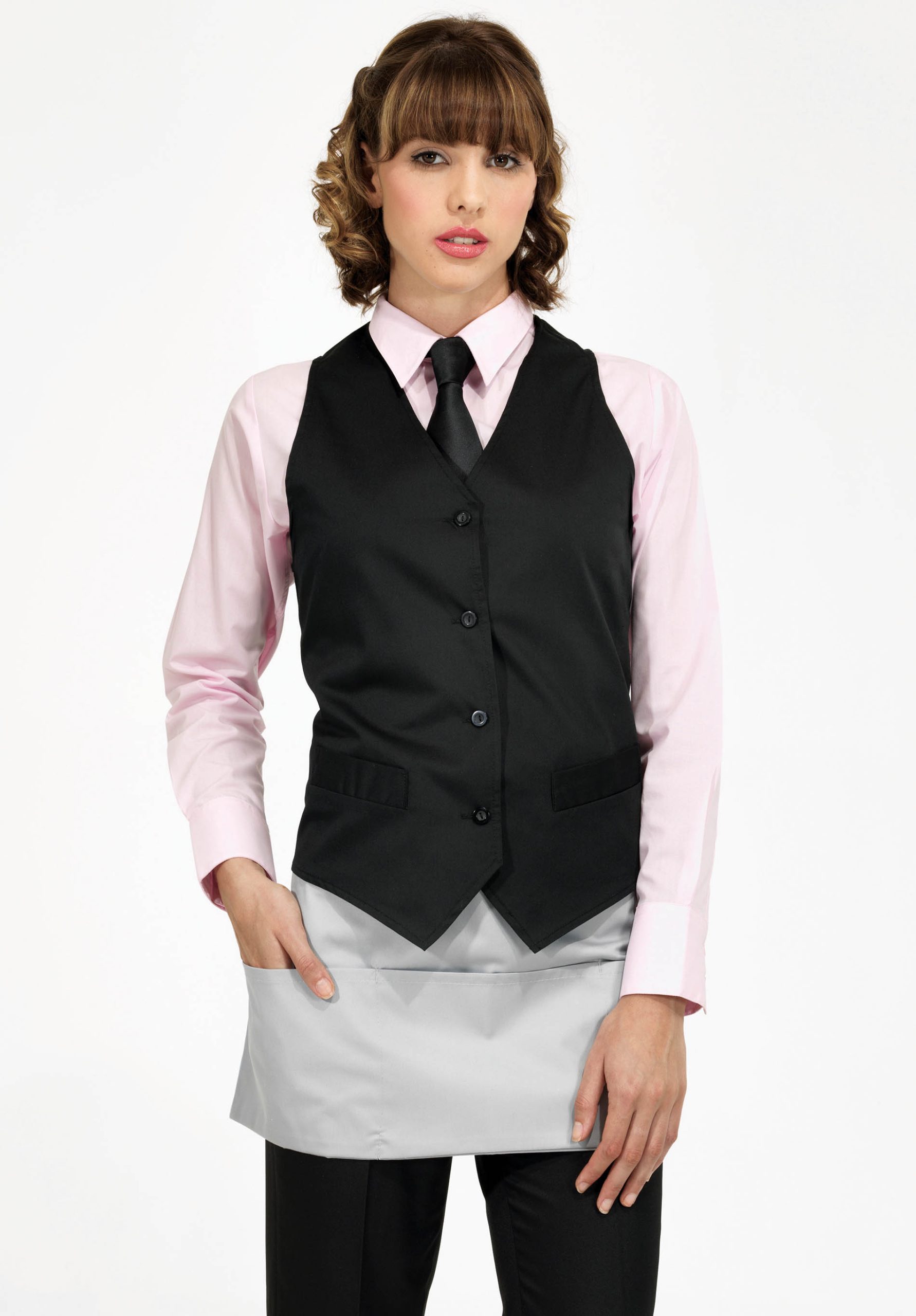 Polyester et coton sergé. Gilet avec 4 boutons. 2 poches avant. Lavage industriel 85°C. Lavage domestique 60°C.