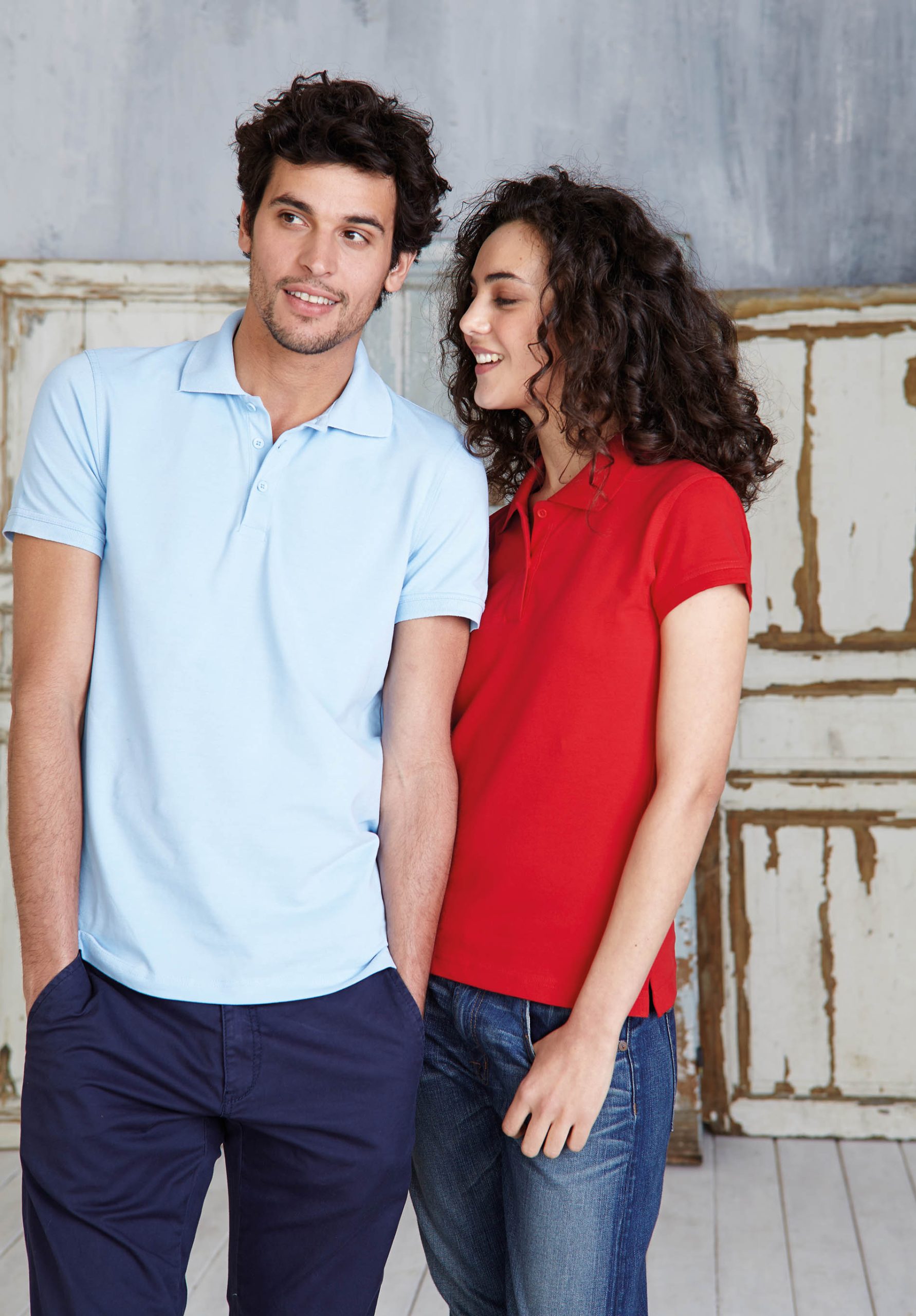Coton et élasthanne. Maille piquée. Col avec bord-côte et bande de propreté. Patte de boutonnage avec 2 boutons. Finition bord-côte au bas des manches. Petites fentes latérales et finition double aiguille au bas du vêtement.