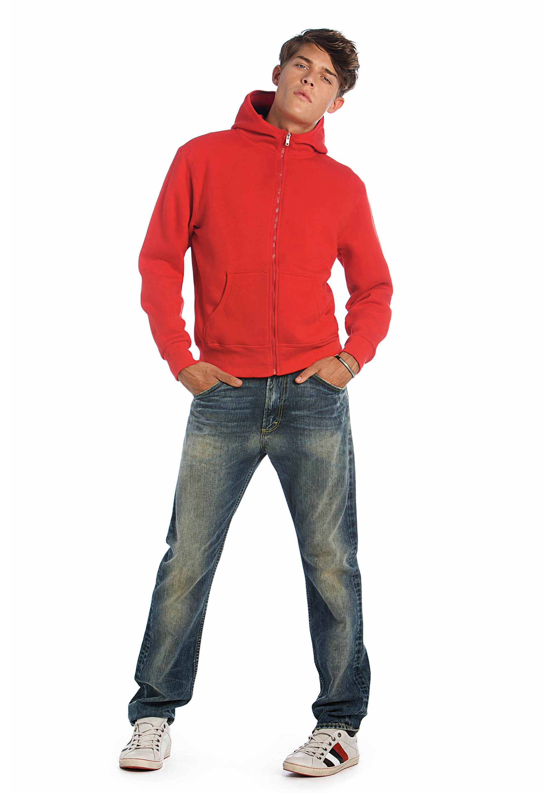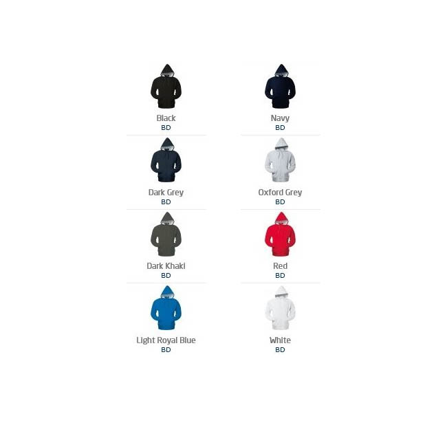 Coton peigné et polyester. Molleton (intérieur gratté). Finition de la capuche et de la poche kangourou avec passepoil en côte 2×2. Poignets et bord en côte 2×2.