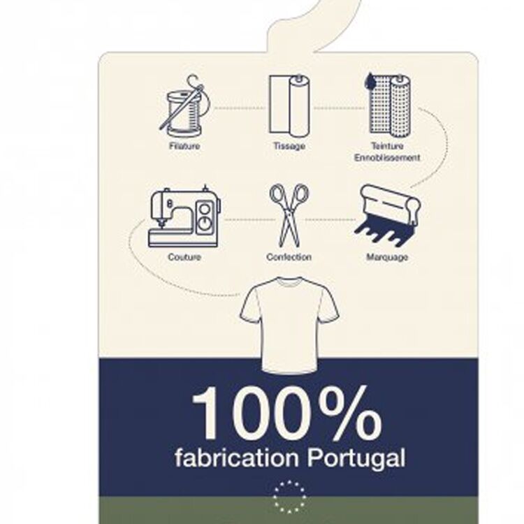 La fabrication est faite au Portugal, qui est indiquée par puce de drapeau Europe cousue.